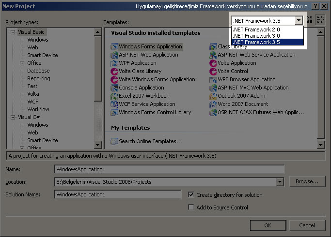 16 Mar 2008 Visual studio 2008 - ASP.NET 3.5 ile Gelen Yenilikler Kategori: ASP.NET Etiketler: ASP.NETASP.NET 2.0Visual Studio 0 Yorum Merhaba arkadaslar, bu makalemizde ASP.NET 3,5 ile yazilimcilarin hayatini çok çok kolaylastiracak olan yenilikleri ele alacagiz. Özellikle dizayn anlaminda diger sürümler de yasadigimiz sikintilara getirilen çözümler gerçekten çok ise yarayacak nitelikte oldugunu söyleyebilirim.Multi-Targeting Destegi Visual Studio 2003 kullanirken Visual studio 2005 gelistirme aracina geçerken birçok uygulama gelistiricinin yasadigi bir sikinti vardi. Visual Studio 2003 ile basladigimiz bir uygulamaya VS 2005 ile devam etmek istedigimiz de ya da VS 2005 ortamini kullanarak açmak istedigimiz de onu mutlaka convert ederek Framework 2.0 uygulamasina çevirip o sekilde uygulama gelistirmeye devam edebiliyorduk. Buda bazi kodlarin Convert islemi sirasinda bozulmasina ya da çalismamasina yol açiyordu. Bunun nedenide Visual studio 2003 ile Framework 1.1 uygulamalari gelistirebilirken, Visual studio 2005 ile 2.0 uygulamalari gelistirebiliyorduk. Bu durumda makinemiz da hem Visual Studio 2003 hemde Visual studio 2005 gelistirme aracinin makinemiz de kurulu olmasi gerekiyordu. Bu durum her açidan yazilimci için zahmetli bir isti. En azindan makinemize format attigimiz da ikisini birden kurmasi çok zahmetli oluyorJMicrosoft bu sorunu çözmek için Visual studio 2008 ile birlikte Multi-Targeting destegini biz yazilimcilara sundu. Saglamis oldugu bu destek ile Visual studio 2008'i makinemize kurdugumuz da daha öceden Framework 2.0, Framework 3.0 ve Framework 3.5 ile gelistirmeye basladigimiz projeleri Visual studio 2008 ortaminda gelistirmeye devam edebilecegiz. Buda yazilimcilara tek bir gelistirme ortaminda .net Framework'ün 3 versiyonunda (Framework 2.0, Framework 3.0 ve Framework 3.5) uygulama gelistirme imkani veriyor. Bunlardan sonra kafaniz da bazi sorular olabilir. Bunlari da önlemek için bazi ipuçlari verecegim. Visual studio 2008'i kurup Framework 2.0 ile bir uygulama gelistirmek istedigimiz de VS ortami Framework 2.0'in bize sundugu proje templatelerini listeliyor. Yine ayni sekilde Framework 3.5 ile bir uygulama gelistirmek istedigimiz de de Framework 3.5 içinde yer alana proje templatelerini kullanabiliyoruz. Bu söylediklerim sadece proje template'i ile sinirli kalmiyor. Kullanilan kütüphaneler, Siniflar, Kontroller ve veri tipleri seçilen framework tipine göre degisiyor. Simdi bu anlattiklarimizi örnek bir uygulama ile daha fazla irdeleyelim. Örnek UygulamaVisual studio 2008'i kullanarak yeni bir proje açalim. Ama olusturmadan önce proje olusturma penceresini biraz inceleyelim.Resimde de gördügünüz gibi Framework tipini biz kendimiz belirleyebiliyoruz. Suanda Framework 3.5 seçili ve yükle olan proje templateleri bu sekilde listeleniyor. Simdi birde framework 2.0 Seçelim. Bakalim neler olacak JResimde de görüldüpü gibi Gelistirme ortamimiz seçtigimiz framework tipine göre (Framework 2.0) hareket etti. Artik, framework yada Visual Studio'nun yeni versiyonuna geçerken bu tip sorunlari yasamayacagiz JBu özellik direk ASP.NET ile ilgili olmasa da ASP.NET ile uygulama gelistiren birçok yazilimciyi mutlu edecek bir yenilik oldugu için makalemde bu konuya da yer vermek istedim. JGenel olarak düsündügümüz de bu yenilik ASP.NET için degil Visual Studio 2008 için getirilmis bir yeniliktir. JavaScript Intellisense Javascript client tarafinda çalisan client tabanli bir script dilidir. Web projesi gelistirip de ben kullanmadim diyen hiçbir programci yoktur sanirim JBu kadar çok kullanilmasina ragmen bir o kadar da yazmasi çok zor ve kullanisli degildir. Visual studio 2008 ile birlikte bu konuda da çok güzel bir yenilik geldi. Bu yenilik Web sitelerinin olmazsa olmazi bir o kadar da programcilarin basina bela olan javascript için bir devrim niteliginde diyebilirim JBazi editörler de ve visual studio 2005 de kismen yer alsa da Visual Studio 2008 de ayni server için kod yazar gibi client'a da javasript kodu yazabiliyoruz artik. Yani Visual Studio 2008 ile birlikte hemen hemen javascript içerisinde yer alan tüm fonksyionlara ve yapilara Intellisense destegi verilmis durumda. CTRL + Space (Intellisense Kisayol) tusunu kullanmak hiç bu kadar zevkli olmamisti gerçekten J JavaScript Debugging DestegiVisual Studio 2005 içerisinde js dosyasi içerisinden ve inlene olarak yazilan javascript için kismende olsa debuging destegi vardi. Ama tam olarak ihtiyacimizi karsilamiyordu. Bu da bize hem zaman kaybi hem de extra is çikariyordu. Bu sorun tamamiyla Visual Studio 2008 ile birlikte ortadan kalkmis durumda. Yazdigimiz javascript'i istedigimiz gibi debug edebiliyoruz. Bahsettigimiz Javascript intellisense desteginden sonra debuging de isin kaymagi oluyor diyebiliriz JBi yandan intellisende bir yandan da debuging yazilimcilarin isini çok ama çok kolaylastiriyor. Böylece uygulamamizda Javascript ile bir seyler yapiyorken içerisinde olusacak hatalari bulmak için saatlerimizi harcamamiza gerek kalmayacak J Çalisabilmesi için Internet explorer'in Ayarlarlarindan asagidaki seçenegi kaldirmaliyiz.ASP.NET AJAX Control Extender Destegi Ilk olarak Atlas olarak karsimiza çikan ve sonrasinda ASP.NET Ajax adi ile Visual Studio 2005'e extension olarak yüklenebilen ASP.NET AJAX 1.0, Visual Studio 2008 de default olarak Visual Studio içinde kurulu geliyor. Sonrasinda her hangi bir yükleme islemi yapmadan ASP.NET Ajax'i projelerimiz de kullanabiliyoruz. Daha önceden yasadigimiz bazi sikintilar tamamen çözülmüs diyebiliriz. Hatta isimizi çok kolaylastiracak güzel yenilikler de bizi bekliyor. Örnegin bir Textbox'a özellik ekler gibi Extender ekleyebiliyoruz. Tahmin edersiniz ki bu da bize inanilmaz kolayliklar getirecek. Web Designer ve CSS Destegi Visual studio 2003 ve Visual Studio 2005 ile özellikle web sayfalari gelistirirken Tasarimcilarin hazirlamis oldugu tasarimi kod ile uyumlu hale getirmek biraz zahmetliydi ve
