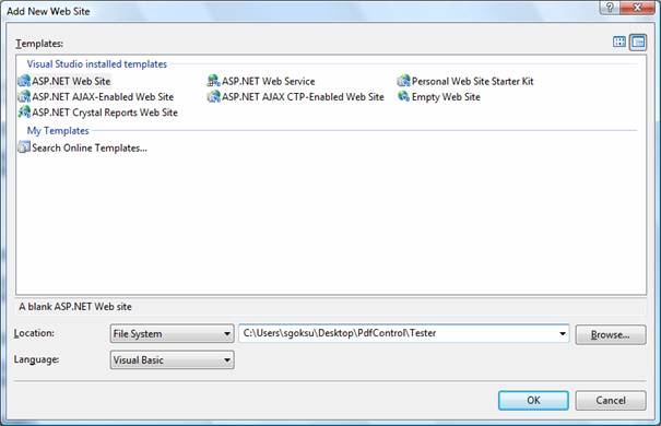 Evet, Kontrolümüzü olusturduk Simdi bunu bir web site içerisinde kullanalım. Bunun için var olan projemize bir web site ekleyelim.